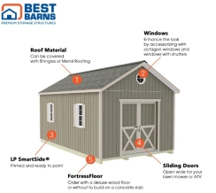 Best Barns 12 x 20 Foot Shedquarters Wood Shed with Sliding Doors