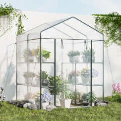 Costway 57 x 55 Inch Walk-In 3-Tier Greenhouse with Roll-Up Door