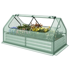 Costway 68 x 33 Inch Galvanized Raised Garden Bed with Greenhouse Cover
