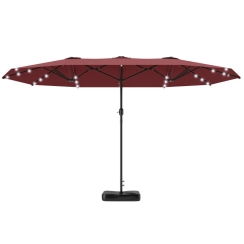 Outsunny 14 2/5 Foot Double Sided Solar LED Umbrella with Base