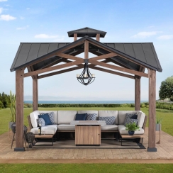 Sunjoy 13 Foot Square Bella Cedar and Steel Hardtop Gazebo