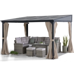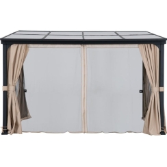 Sunjoy 10 x 12 Foot Wall-Mounted Lean-To Gazebo with Curtains and Netting